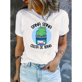 Letter & Graphic Print T-shirt, Casual Short Sleeve Crew Neck Top, Women's Clothing